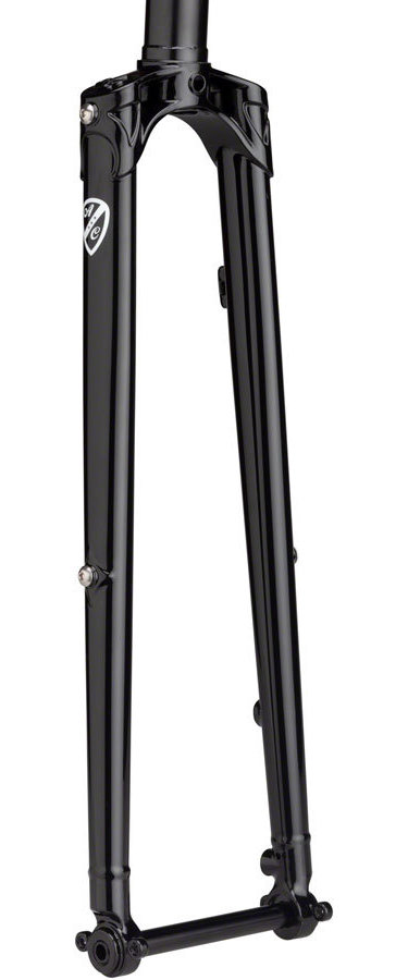 Featuring All-City’s first fully custom lugged crown, the versatile, cross-inspired Super Professional Fork is right at home on mixed terrain. Designed to provide a fast, agile, and responsive ride, it offers durable steel construction, crown and mid-blade rack mounts for a rack and fenders, 45mm rake, compatibility with flat-mount brakes, and clearance for 700c x 45mm or 650b x 47mm tires. The entire fork is E.D. dipped for rust proofing, with a nice black powdercoat over everything.