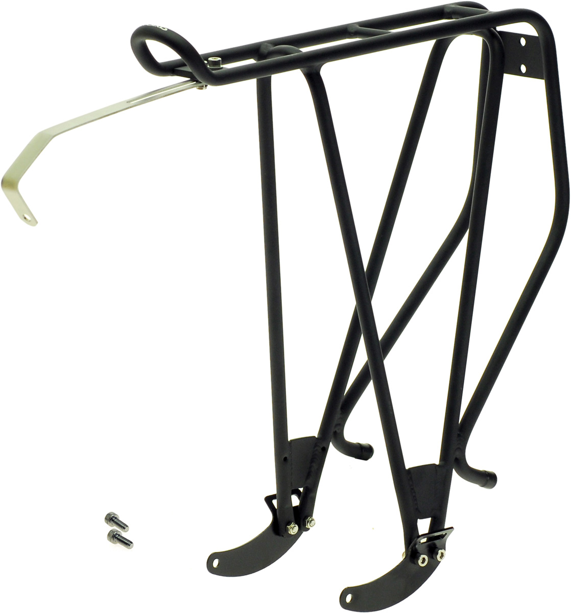 Axiom's Streamliner Road DLX Rack is designed to fit on road bikes that don't have eyelets. It's made of reliable, light aluminum, features struts to keep loads from getting close to the rear wheel, and offers ample heel clearance when you're carrying panniers.