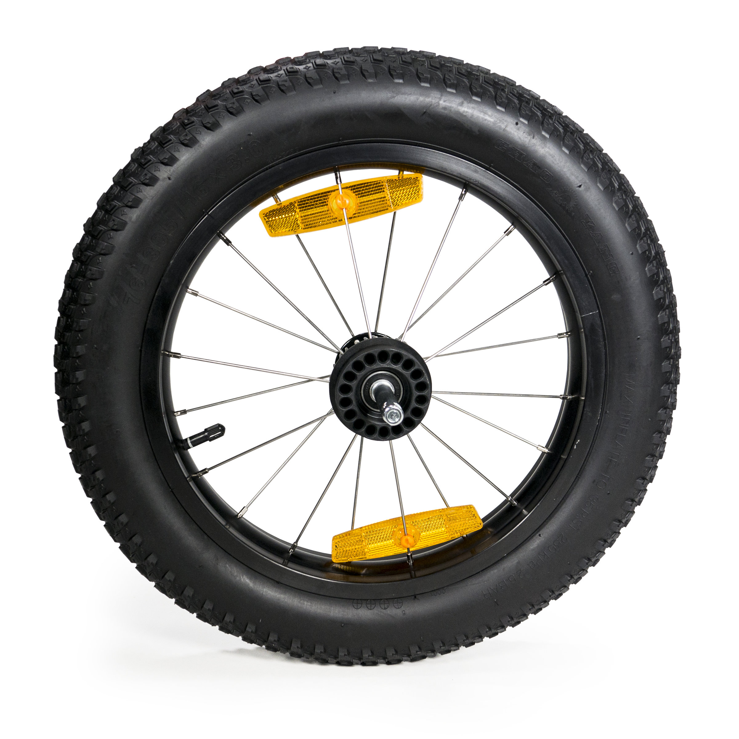Don’t let your adventures be limited to the pavement. The 16+ Wheel Kit improves handling over snow, sand and gravel. The kit includes two 16x3” push button wheels with a knobby tread. A wide range of acceptable tire pressures let you adjust the stiffness to your liking. Let a little air out and the tires soak up the bumps for your passengers. Say goodbye to the sidewalk. Constructed with aluminum rim/hub and stainless steel spokes.