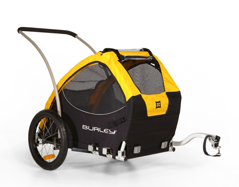 Designed specifically for pets, Burley's Tail Wagon is the perfect way to take your furry companions everywhere. A flip-down tailgate makes for quick loading, a suspended, removable floor offers easy cleaning, and cargo space lets you bring all the toys. Mesh windows keep your pet cool and well vented when it's warm, while a clear, roll-back cover on the front window keeps the rain out. Plus, the Tail Wagon folds easily for storage, has a simple-to-attach hitch that fits all bicycles, and works with Burley's Stroller Kit (sold separately) for go-anywhere convenience.