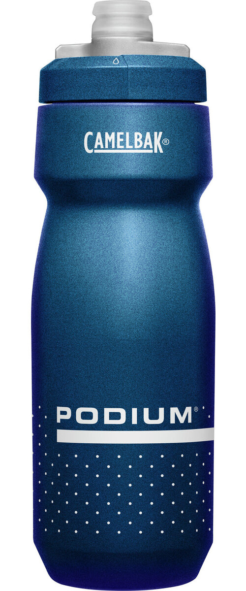 Enjoying a cool drink of water while you're enjoying the freedom and relaxation of riding your bike helps keep you hydrated and improve your on-road performance. For years, cycling enthusiasts have trusted CamelBak to provide them superior bottles for water that are optimized for peak performance. CamelBak Podium bike water bottle remains the best of the best in the cycling world thanks to a brand-new design that makes it easier than ever to clean. This premium bicycle water bottle has been reengineered to fit securely in a variety of bicycle bottle cages. It has been designed to squeeze easily, allowing you to take in more water per squeeze with less effort. This CamelBak reusable sports water bottle has been engineered with a high-flow, self-sealing cap, which maximizes flow rate while reducing spills and splashes. The Podium is also BPA-free. All parts are easy to separate, which makes cleaning a breeze. Our sports bottle is also visually stunning, featuring clean graphics that make for an easy match with your kit. Our Got Your Bak Lifetime Guarantee covers all reservoirs, backpacks, bottles, and accessories from manufacturing defects in materials and workmanship for the lifetime of the product. The CamelBak Podium Bike Squeeze Water Bottle is available in several colors and pattern designs, allowing you to pick one that matches your personality.