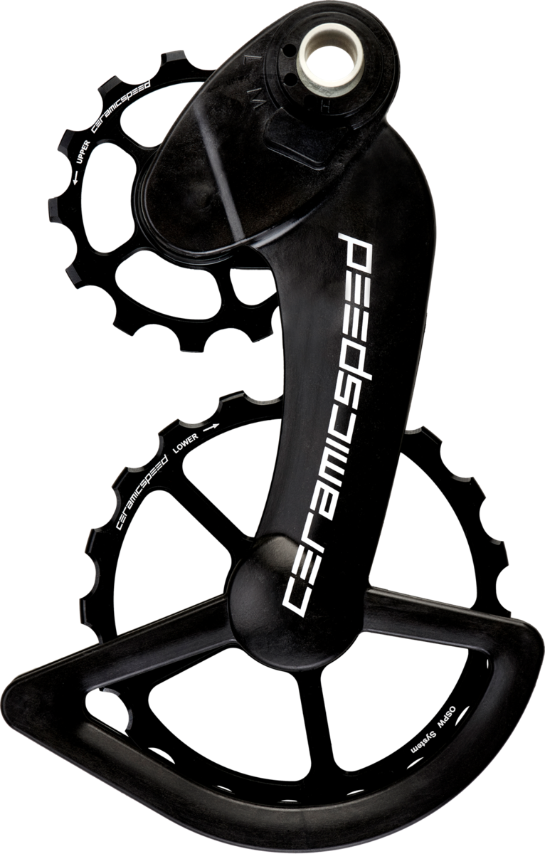 The 13-tooth/19-tooth OSPW for Campagnolo provides 40% lower friction over a standard 11-tooth Campagnolo pulley wheel and fits up to a 32-tooth cassette.