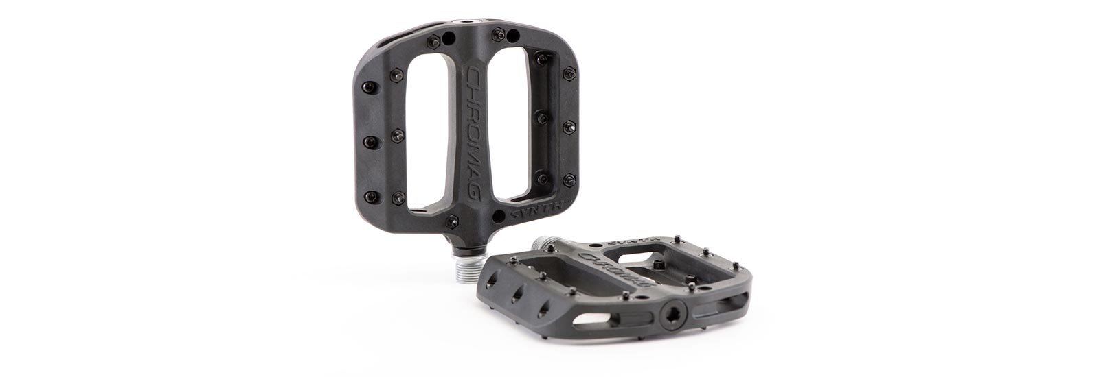 Light, impact resistant. New for 2018 is the Synth Pedal. An injection molded, nylon reinforced platform that is light, impact resistant and won’t break the bank. Modeled after our Scarab pedal, the Synth features a large platform with true concave and our proprietary pin system. It uses the same high-end axle and bearing assembly as on our Scarab and Contact models so you can count on long-life and smooth performance, with common serviceability components available from Chromag.