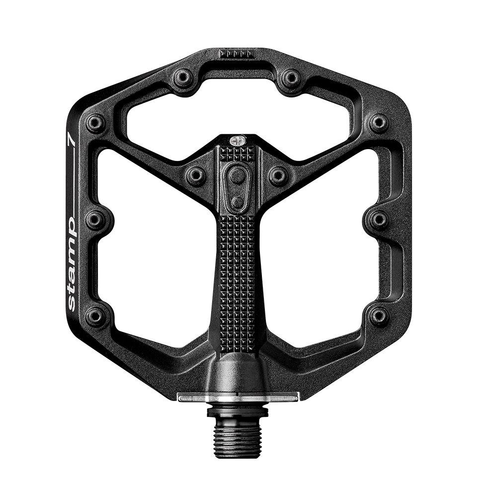 Foot, meet pedal. Thanks to the Stamp, you two will be closely acquainted. After scrutinizing data from the outsoles of top mountain bike shoe brands, Crank Brothers discovered that two distinct surface areas can optimize the shoe/pedal bond through the whole range of shoe sizes. The result is the Stamp, a pedal with minimum profile and maximum concavity.