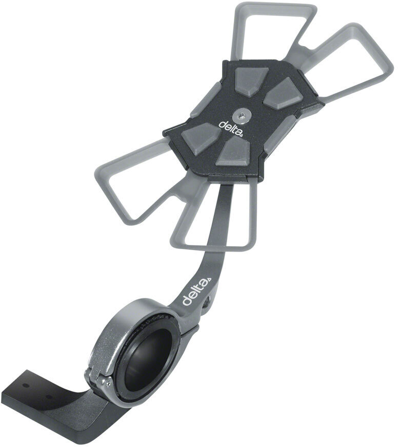 - Construction: Forged aluminum with silicone stretch web. Aesthetic patent-pending design offers riders a low-profile mount. Additional support arm for forward-facing placement on any handlebar from 25 mm.