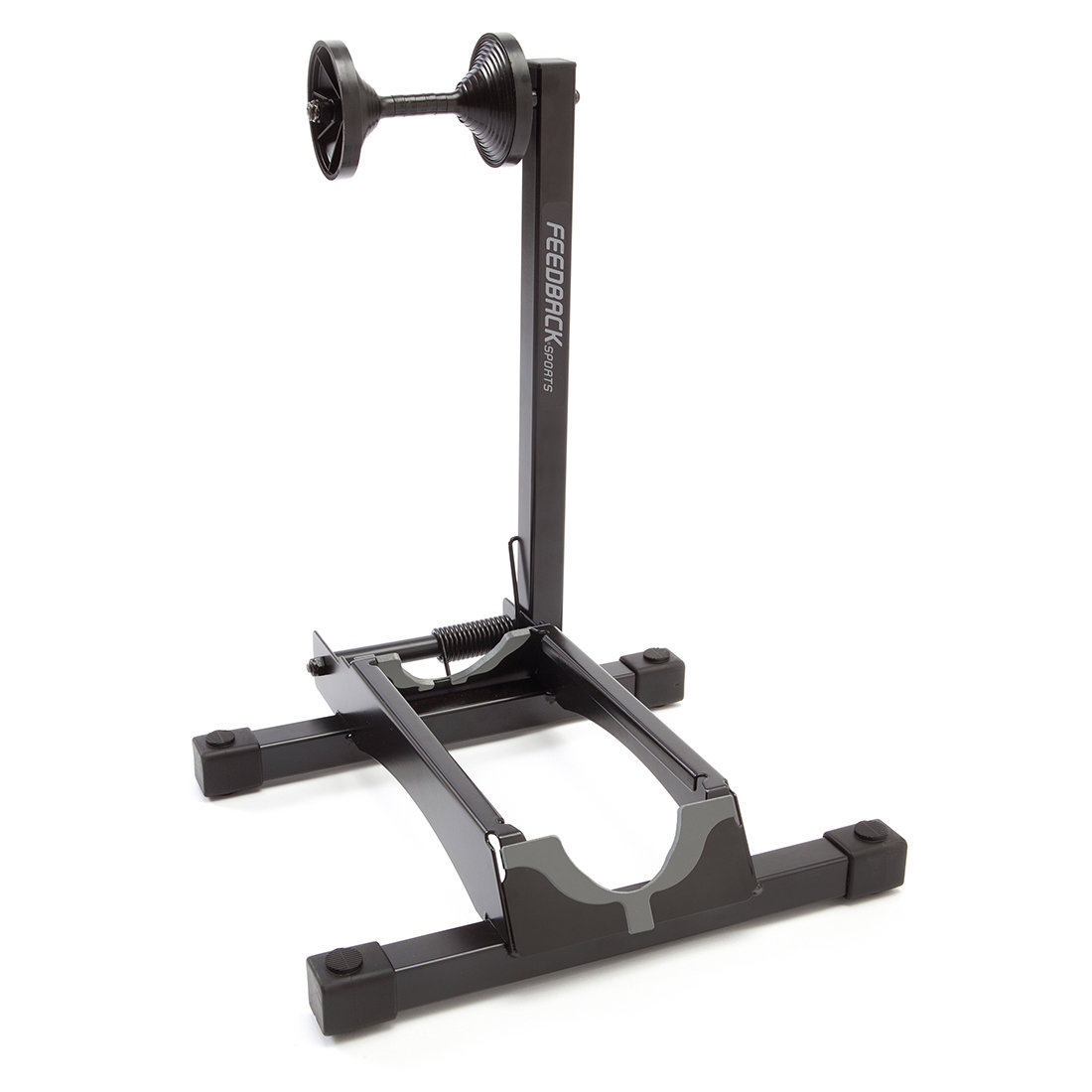 The Feedback Sports RAKK XL is a versatile bike storage rack intended for Plus-size and Fat-bikes. Comes with an adapter for plus-size tires that can be removed as needed to expand the size of the tray. Store your bike by the front or back tire without touching any of your bikes components. Easy to use and low profile to store away. Simply roll your bike in and walk away. Fold flat for storage when not in use.