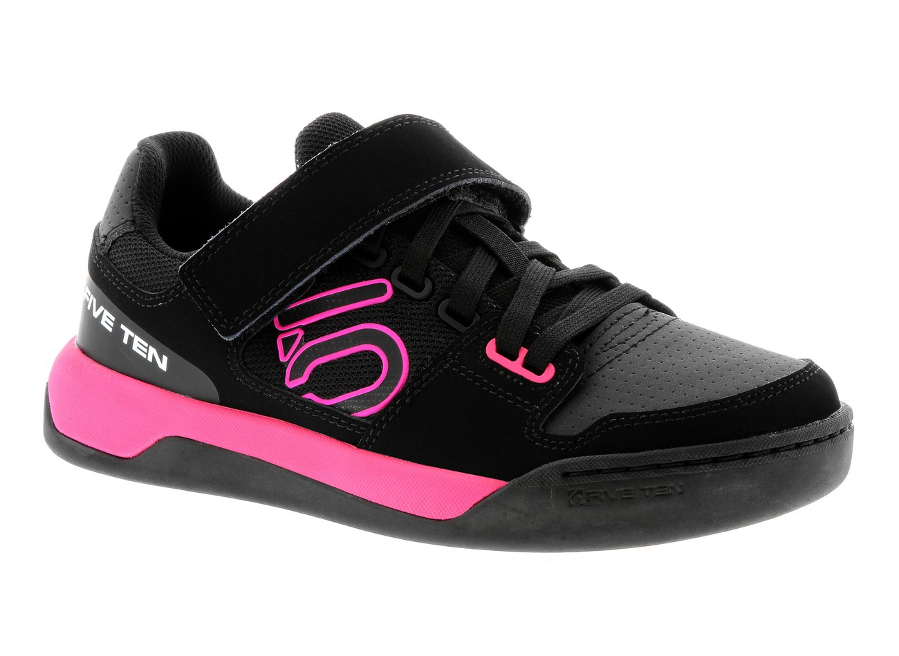 This Hellcat is a lighter and lower-profile version of Five Ten's classic Hellcat. Its upper is a combination of leather and synthetic for durability and breathability. The 3/4 dual-density, vibration-damping TPU shank provides flex when hiking, yet maintains rigidity when pedaling. The compression-molded EVA midsole reduces weight and provides added comfort.