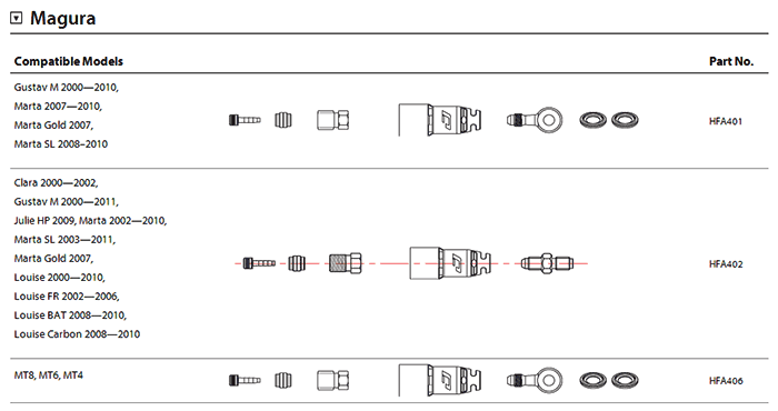 Designed to work seamlessly with Jagwire's Mountain Pro Hydraulic hose (sold separately), Jagwire's Mountain Pro Quick-Fit Adapters are the perfect way to optimize braking performance and durability. This adapter kit contains all the components required for Magura brakes and includes enough hardware for one bicycle.