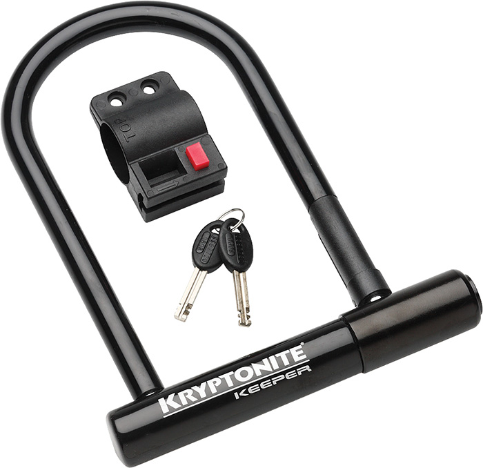 Kryptonite's Keeper 12 U-Lock is like a tough nut: you just can't crack it. Thanks to the 12mm hardened steel shackle that resists cutting and leverage attacks, you get peace-of-mind while you run into the grocery store or lock up outside the coffee shop. The shackle connects to the disc-style cylinder for exceptional security, and it all sits in the click-style transportation bracket so it stays stable during transport. To top it all off, you get a reinforced collar over the keyway for added protection.