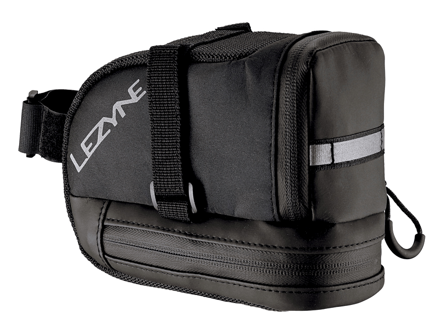 Lezyne takes seatpack storage to the next level with their L-Caddy. Inside, fitted neoprene compartments organize your gear for easy access, while a durable, water-resistant zipper guards against weather. Plus, a zippered bottom compartment securely stores your multi-tool away from your spare tube, eliminating the possibility of a premature puncture. The L-Caddy also boasts a reflective taillight loop for safety.