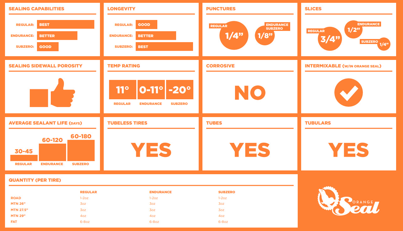 Your tubeless wheels will benefit from the use of Orange Seal Tubeless Tire Sealant. It is proven to seal large punctures up to 1/4-inch and perform under varying temperatures and altitudes. Orange Seal Tubeless Tire Sealant is compatible with most bike tire systems and is eco-friendly.
