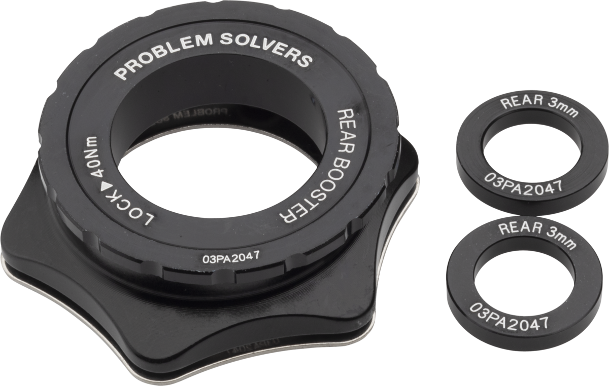 Booster thru-axle hub spacer kits are designed to give your non-Boost front and rear thru-axle hubs the boost they need to fit any Boost-compatible frame or fork. Kit includes Center Lock Adaptor, allowing riders to use 6-bolt rotors on Shimano Center Lock compatible hubs.
