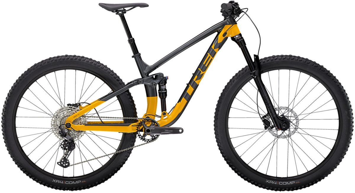Fuel EX 5 is the gateway to full suspension trail bikes. Trail-taming front and rear suspension, a Shimano 1x12 drivetrain, a dropper post for getting low on descents, and hydraulic disc brakes make Fuel EX 5 a high-value, high-performance mountain bike with exceptional versatility.