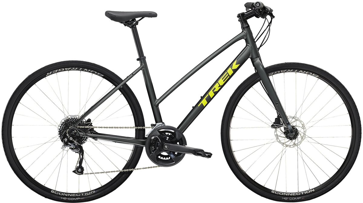 FX 2 Disc Stagger is a stylish and versatile hybrid bike with a classic stepthrough frame geometry that's easier to mount and dismount. Train, commute, or ride for fun with the wide range of speeds, reliable disc brakes that let you stop on a dime, and loads of mounts for accessories.
